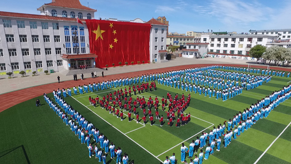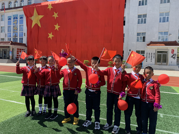 童心永向黨、歡歌慶六一,呼瑪縣第一小學(xué)的操場上,由全校600余名師生共同組成黨徽、100的造型圖案,在四層樓高的巨幅國旗映襯下,蔚為壯觀,一面面小紅旗在學(xué)生們手中揮舞,師生們懷著崇敬的心情,共同演唱《沒有共產(chǎn)黨就沒有新中國》。氣勢磅礴的開場節(jié)目,表達(dá)了呼瑪縣廣大師生學(xué)黨史、頌黨恩、跟黨走,隆重慶祝建黨100周年的激動(dòng)心情。