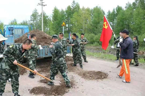 圍繞突出問題,辦好事、解民需。塔河林業(yè)局各基層單位在為民辦好事上下功夫,千方百計(jì)解決職工群眾關(guān)注的堵點(diǎn)、焦點(diǎn)問題,切實(shí)把黨史學(xué)習(xí)成效轉(zhuǎn)化為解民需的強(qiáng)大動(dòng)力。防火辦黨委組織黨員干部組成行動(dòng)黨小組深入到受汛情影響較為嚴(yán)重的居民群眾家中清理積水、立院墻和板杖子、搬運(yùn)煤塊等勞動(dòng),切實(shí)解決了群眾水淹后帶來的生活實(shí)際問題;瓦拉干林場黨委積極響應(yīng)“一團(tuán)五盟”號召,協(xié)調(diào)瓦拉干派出所,聯(lián)合開展了“林地融合辦實(shí)事,修繕公路暖民心” 黨建聯(lián)盟主題活動(dòng),林場、鎮(zhèn)政府、派出所共有100余名職工參與,林場出動(dòng)裝載機(jī)、運(yùn)土車各一輛,運(yùn)送填坑土料40余立方米,將長達(dá)3.5公里的坑洼路面及時(shí)進(jìn)行了修繕,著力解決職工居民出行難問題,確保進(jìn)場公路安全暢通。