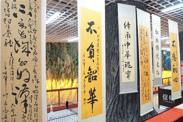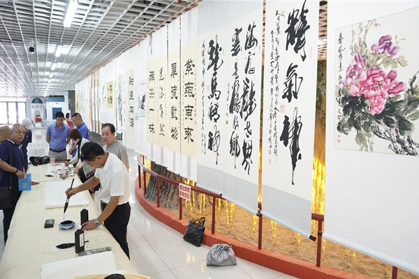 挽袖、研墨、調(diào)色、揮毫,書畫家們進(jìn)行現(xiàn)場(chǎng)書畫創(chuàng)作并交流創(chuàng)作心得。以書言志、以畫寄情,一幅幅極富感染力的書法、繪畫作品,抒發(fā)了對(duì)黨的敬愛(ài)之情和對(duì)祖國(guó)的美好祝愿。活動(dòng)現(xiàn)場(chǎng)共展出書畫作品百余件。