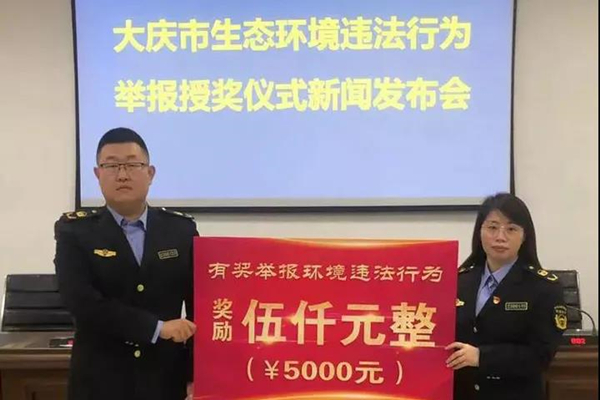 今年6月,大慶市出臺首個(gè)生態(tài)環(huán)境違法行為舉報(bào)獎勵(lì)辦法。7月,大慶市生態(tài)環(huán)境局接到群眾舉報(bào),反映某生物科技有限公司偷排生產(chǎn)廢水。經(jīng)查,該公司污水處理車間確有利用軟管向地下井排放生產(chǎn)廢水的行為。大慶市生態(tài)環(huán)境局責(zé)令其立即改正環(huán)境違法行為,并依法將該案移交公安機(jī)關(guān)進(jìn)一步處理。該舉報(bào)符合《獎勵(lì)辦法》中的條款,按規(guī)定給予舉報(bào)人5000元獎勵(lì)。