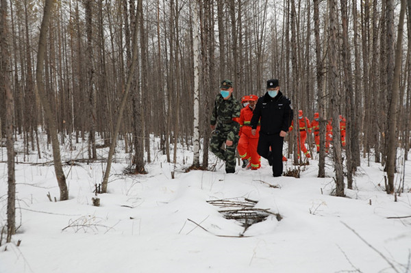阿木爾林業(yè)局專業(yè)撲火隊(duì)員巡護(hù)山林(王力 攝)