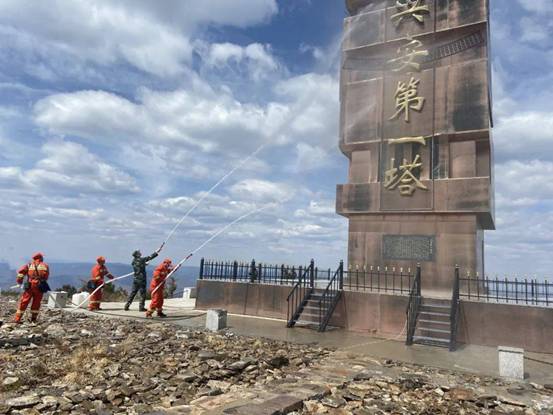 據(jù)相關(guān)負責(zé)人介紹,“興安第一塔”因所處位置大興安嶺最高峰而得名,這里常年缺少水源,瞭望員日常生活用水需要從幾公里外的地方人工背運,今天用水噴淋“興安第一塔”尚屬首次。