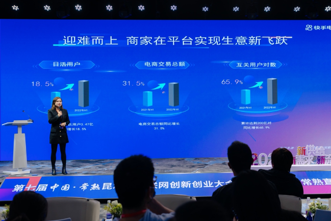 10月28日,由常熟市人民政府主辦,常熟市商務(wù)局和快手承辦的第七屆中國(guó)·常熟昆承湖互聯(lián)網(wǎng)創(chuàng)新創(chuàng)業(yè)大會(huì)在江蘇常熟舉行??焓值谝粚贸J熘辈ス?jié)也在會(huì)上同步啟動(dòng),會(huì)上,快手電商宣布未來將在常熟扶持10個(gè)千萬GMV新商家和100個(gè)百萬GMV新主播。