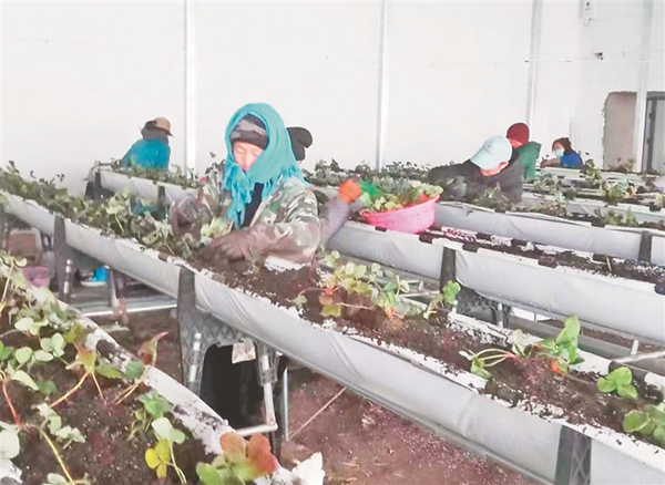“早上7點去,下午4點多就收工回來了,離家近,每天能賺150元,挺好的?!睆埥鹣阏f。走進產業(yè)園的草莓溫室大棚,如張金香一般來自谷大村的女工們正認真地進行著手中的工作。移栽、覆膜、澆水……14萬株蘊含著期待與希望的草莓秧苗正在茁壯成長。