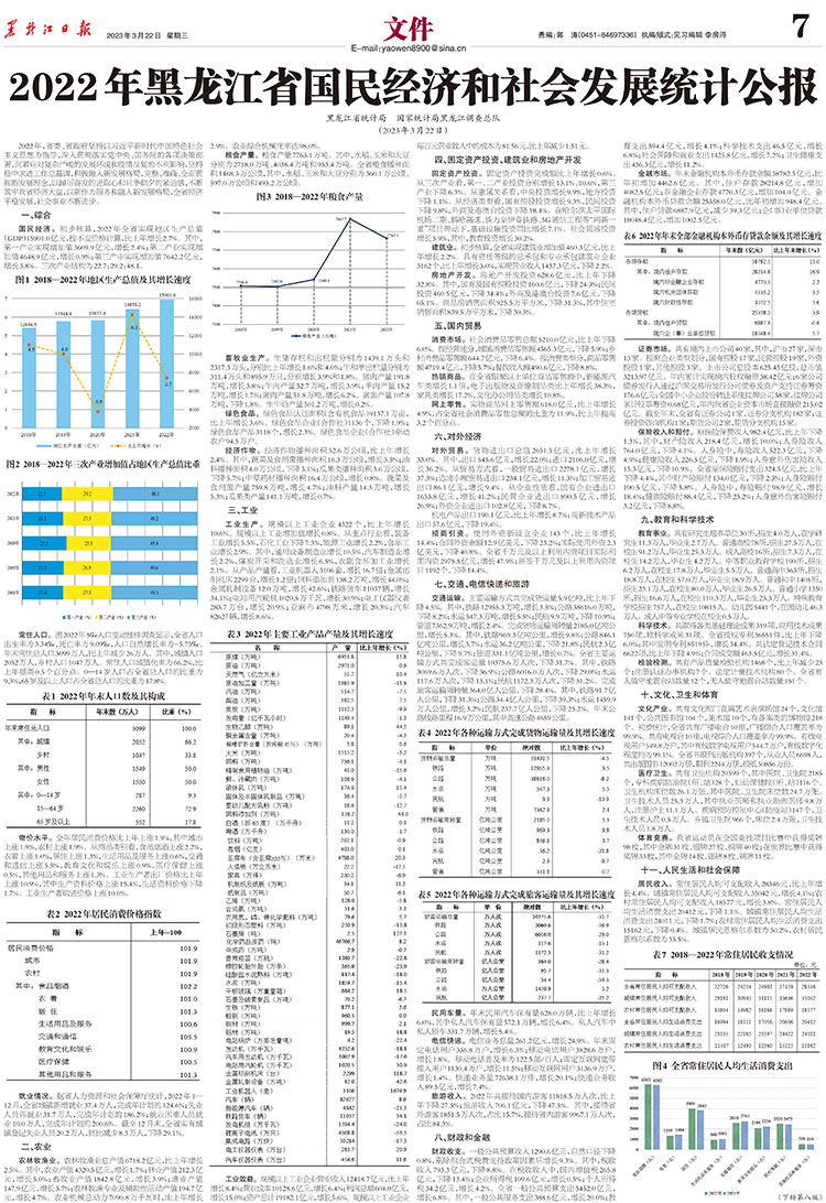 黑龍江省統(tǒng)計(jì)局 國(guó)家統(tǒng)計(jì)局黑龍江調(diào)查總隊(duì) (2023年3月22日)
