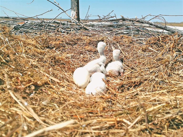 保護區(qū)管理局保護科負責(zé)人欒新介紹,30年的時間里,人工招引巢結(jié)構(gòu)由原來的單一人工樹巢更新優(yōu)化到鐵質(zhì)三腳架招引巢,具有牢固性強、耐腐爛、利用年限久、招引成功率更高的特點。截至目前,保護區(qū)已為東方白鸛搭建了人工招引巢389個。
