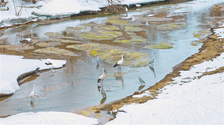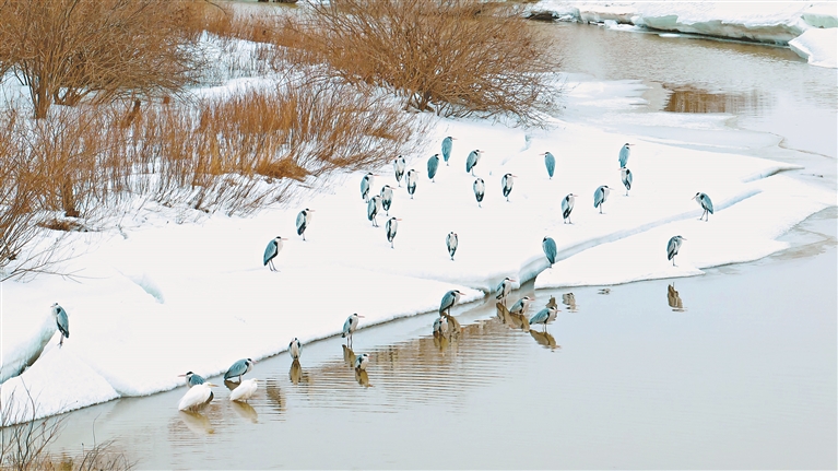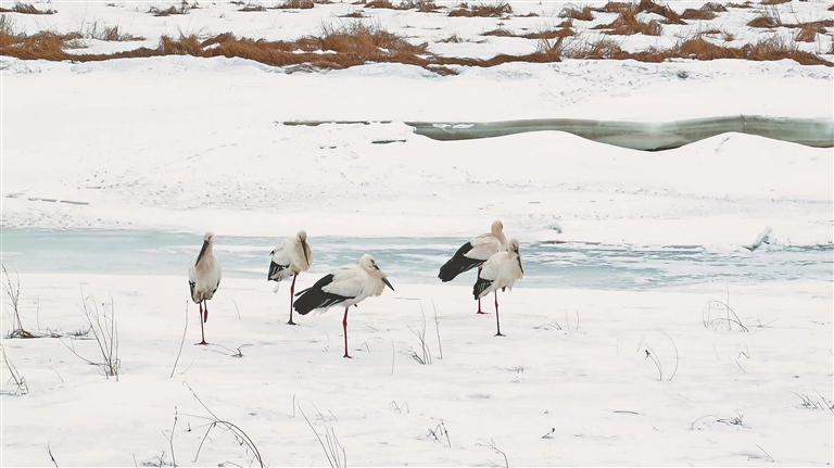3月17日清晨,在烏蘇里江國(guó)家濕地公園內(nèi),近百只野鴨、白鷺、蒼鷺、東方白鸛等候鳥(niǎo)如約而至。這些候鳥(niǎo)時(shí)而梳羽展翅、引頸高歌,時(shí)而優(yōu)雅地站在冰面上休憩,與尚未消融的冰雪相映成趣,為初春時(shí)節(jié)的烏蘇里江增添了勃勃生機(jī)和自然野趣。