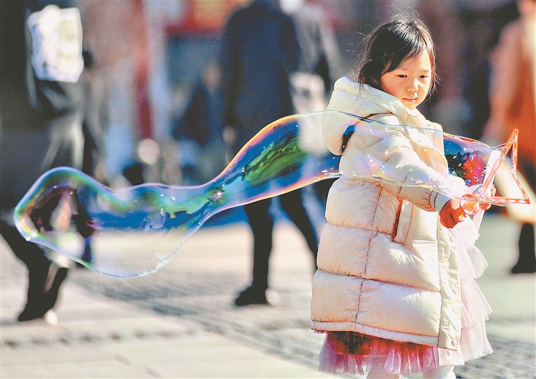 24日,陽光明媚,空氣清新,哈爾濱市許多家長(zhǎng)帶著孩子外出游玩。在公園里、廣場(chǎng)上和松花江畔,孩子們騎車、放風(fēng)箏、玩滑板、吹泡泡……奔跑著,歡笑著,盡情享受著春天的美好。