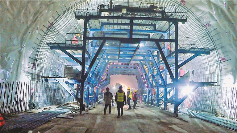 在施工現(xiàn)場(chǎng),現(xiàn)場(chǎng)工長(zhǎng)按工序安排施工,專(zhuān)職工人指揮車(chē)輛向指定位置卸料,推土機(jī)緊跟推平,平地機(jī)配合推土機(jī)精平路基填筑表面,凸塊壓路機(jī)、振動(dòng)式壓路機(jī)、光輪壓路機(jī)相繼推進(jìn)壓實(shí),挖掘機(jī)、混凝土運(yùn)輸車(chē)、汽車(chē)吊輔助配合共同施工作業(yè),形成梯隊(duì)式連續(xù)作業(yè)。東升隧道內(nèi),現(xiàn)場(chǎng)技術(shù)工人們各司其職,緊張而有序地進(jìn)行支架、綁筋、焊接等施工工作,嚴(yán)格遵循生產(chǎn)管理制度,做到施工工序和施工過(guò)程規(guī)范化、程序化。