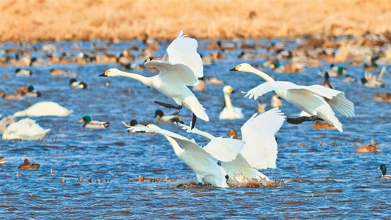 雞西生態(tài)資源豐富,大界江、大界湖、大濕地、大森林、大冰雪等自然景觀美不勝收。黑龍江興凱湖國(guó)家級(jí)自然保護(hù)區(qū)是候鳥(niǎo)遷徙的重要停歇“驛站”,也是中國(guó)重要的野生鳥(niǎo)類(lèi)棲息地之一,每年春季有150多萬(wàn)只候鳥(niǎo)從興凱湖區(qū)域跨境遷徙,場(chǎng)面蔚為壯觀。
