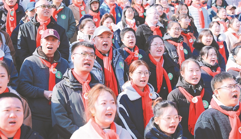 市民在活動(dòng)現(xiàn)場齊“喊江”。 本報(bào)記者 劉心揚(yáng)攝
