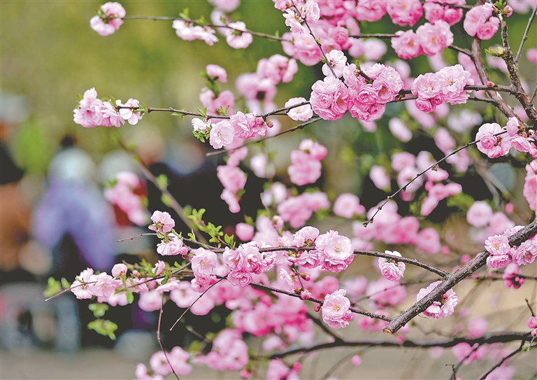 近期,哈爾濱市街頭、廣場、公園里種植的榆葉梅陸續(xù)開花,有粉色的,有紅色的,一團(tuán)團(tuán)一簇簇,綻放的花朵吸引人們駐足觀賞、拍照。