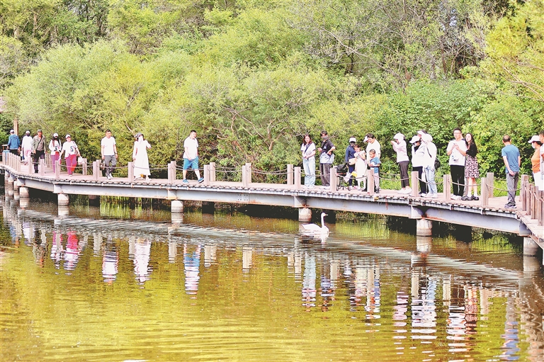 16日,陽光明媚,空氣清新,哈爾濱市迎來了好天氣。太陽島上,草木茂盛,百花爭艷,許多本地市民和南方游客組團(tuán)來到這里避暑游玩。有的游人搭起帳篷野餐,有的游人走上濕地棧道觀賞美麗風(fēng)景。孩子們玩過各種游樂項目后,再與小鹿、松鼠等小動物來個親密接觸。