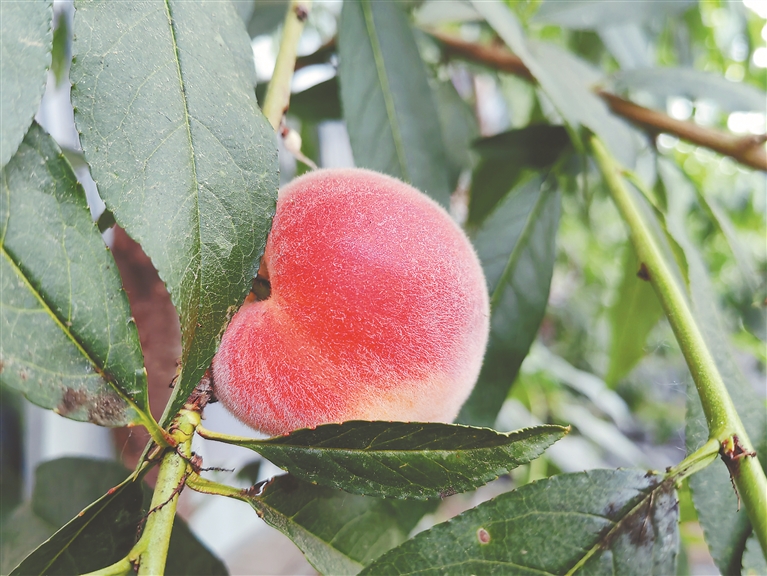 6月18日,在北大荒集團(tuán)寧安農(nóng)場(chǎng)有限公司鄉(xiāng)村振興產(chǎn)業(yè)園南果北種示范種植基地,一棵棵傲然挺立的桃樹上綴滿的毛桃粉中透紅、果香四溢、成熟待采。