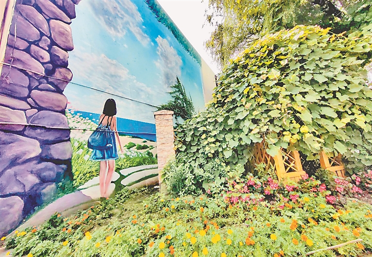 哈爾濱市道外區(qū)東直路上,路邊的花卉景觀與墻體彩繪互相映襯,成為街頭一道美麗風(fēng)景,引得人們紛紛駐足觀看。畫(huà)里的溪流、小徑、樹(shù)木、花草、動(dòng)物與畫(huà)外的綠地巧妙結(jié)合起來(lái),融為一個(gè)整體,創(chuàng)意新穎,視覺(jué)效果良好,讓人眼前一亮。