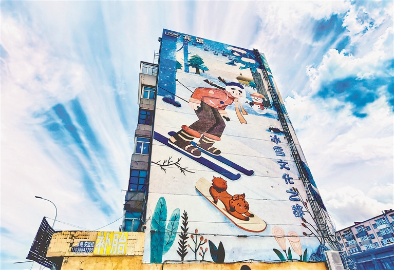道外區(qū)火車頭街附近,一棟7層樓的外墻上繪制了滑雪運(yùn)動(dòng)的場(chǎng)景,吸引許多路人觀看;北馬路附近,一棟老樓的紅磚外墻也進(jìn)行了彩繪,巨大的圖畫(huà)為當(dāng)?shù)卦鎏砹艘坏烂谰啊?/span>本報(bào)記者 蘇強(qiáng)攝