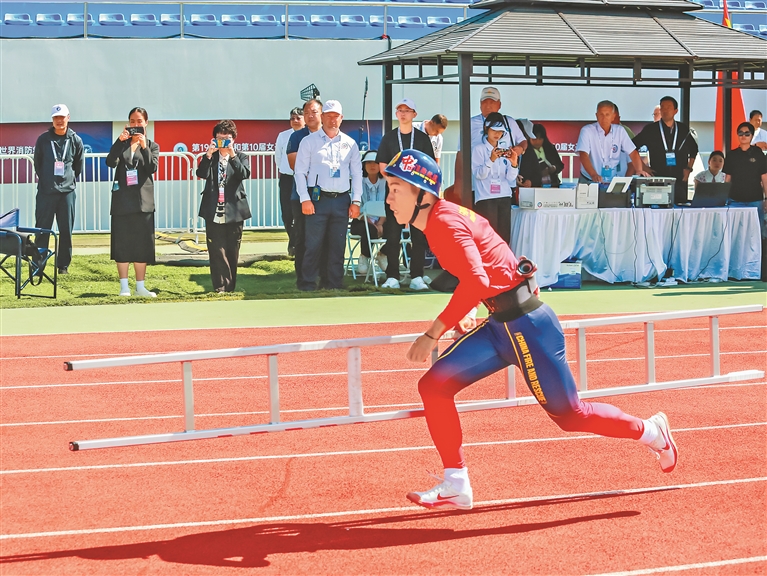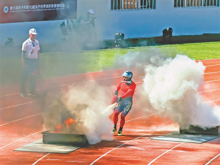 本報(bào)9日訊(記者蔡韜)9日上午,在世界消防救援錦標(biāo)賽男子消防4×100米接力比賽中,中國(guó)隊(duì)跑出55秒62的好成績(jī),獲得第一名。