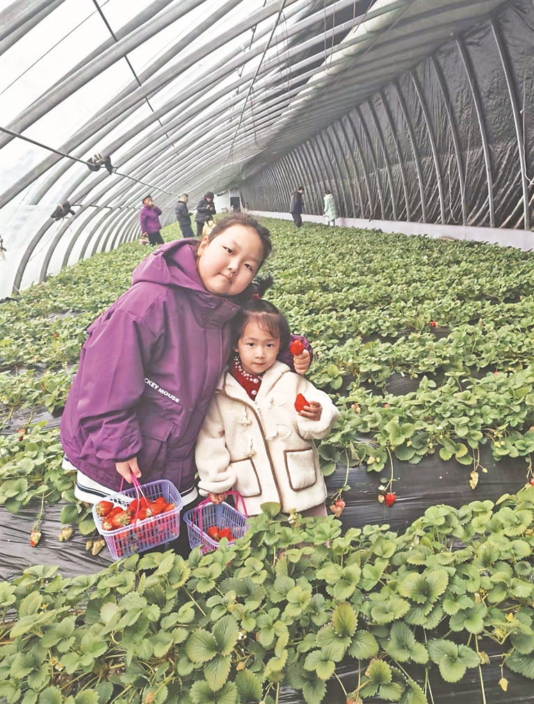 據(jù)園區(qū)負責人張立元介紹,2月份以來,日均接待游客超過100人次,周末時人數(shù)成倍增長。大棚內(nèi),草莓占地5畝,通過自主育苗、全程采用無公害種植技術(shù)等方式,產(chǎn)量和質(zhì)量實現(xiàn)雙提升,年產(chǎn)量約6000斤。