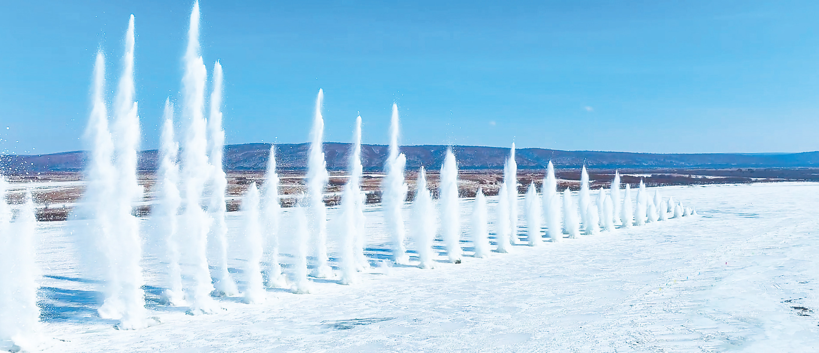 短短幾秒的時(shí)間,航標(biāo)號(hào)262到264之間的黑龍江江面上,便瞬間形成了幾十米高的冰霧柱和三公里長(zhǎng)的破碎段,場(chǎng)面非常壯觀。“經(jīng)前期凌汛會(huì)商,今春黑龍江上游發(fā)生冰凌卡塞的可能性較大,所以我們決定對(duì)黑龍江呼瑪鎮(zhèn)上江島段和鷗浦鄉(xiāng)三合段兩個(gè)主要區(qū)域?qū)嵤┤L(zhǎng)4800米的主動(dòng)防凌爆破作業(yè)?!焙衄斂h水務(wù)局副局長(zhǎng)王軍說。據(jù)悉,鷗浦鄉(xiāng)三合江段1800米的防凌爆破作業(yè)將于2日實(shí)施。